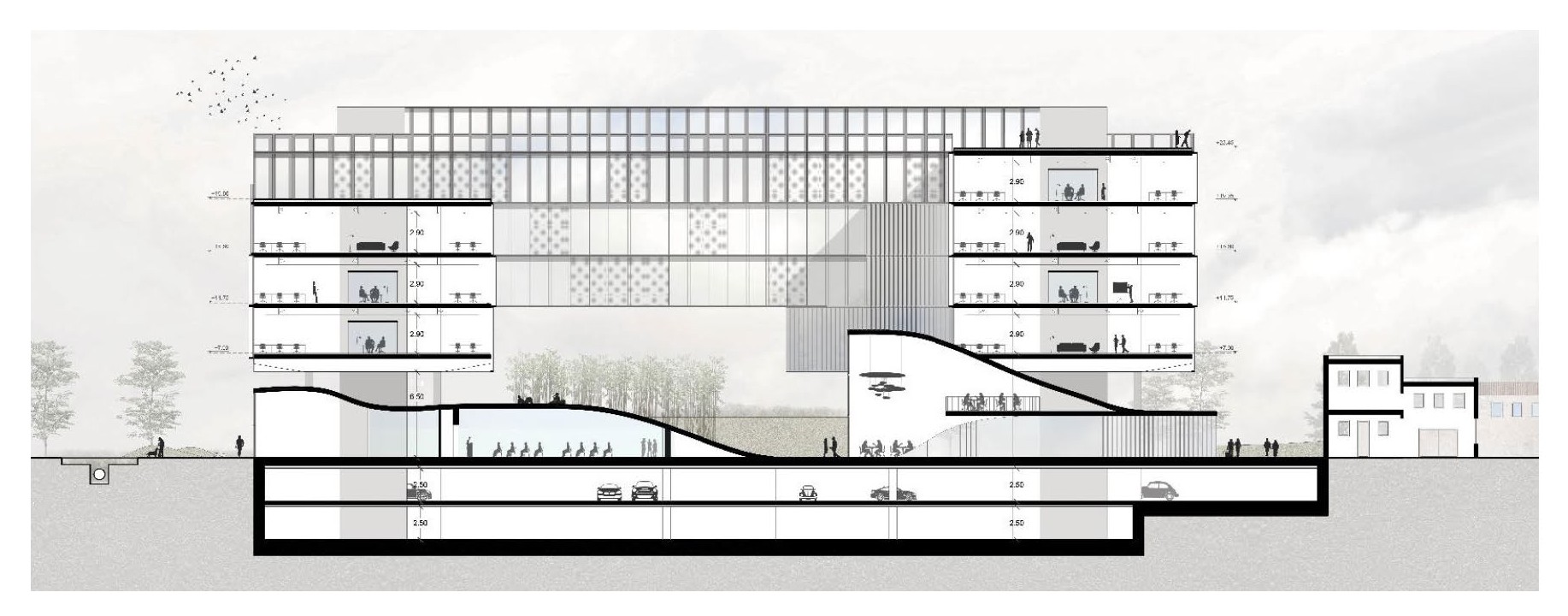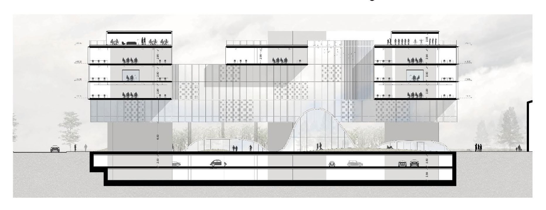 La proposta progettuale per il nuovo headquarter Snam a Milano nell’area Symbiosis, in via Vezza D’Oglio, è un edificio sobrio, compatto ma fortemente articolato.